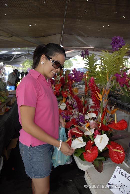 Checking out flowers at a local market